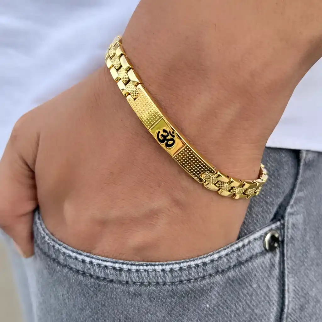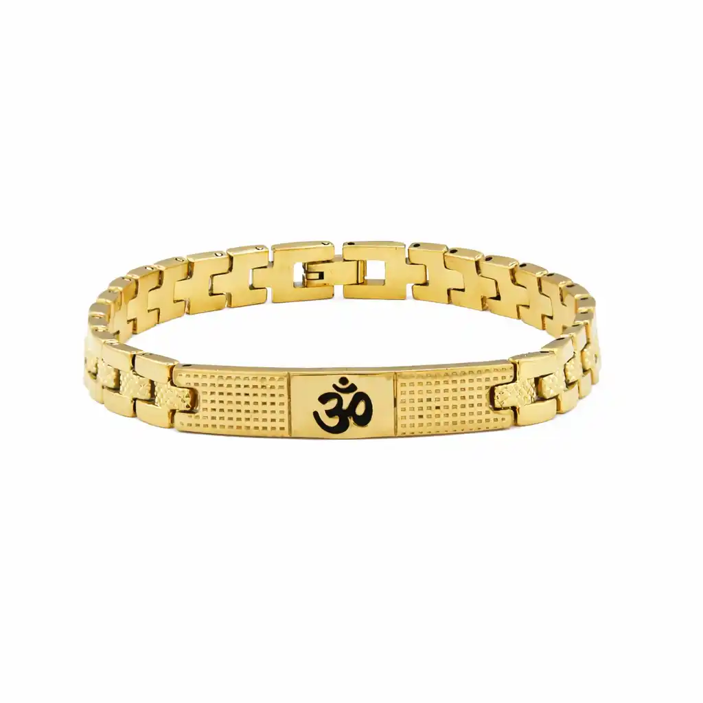 Om Loose Gold Bracelet For Men With Dotted Pattern(8 Inch)
